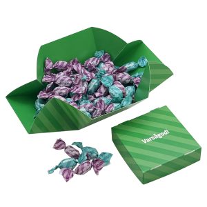 Ingredienser: glukossirap, socker, 10,0% fruktjuice (äpple, druva, päron, persika) av fruktjuicekoncentrat, gelatin, syra: citronsyra, färgande livsmedel: svarta vinbär, morot, citron, safflor, spirulina; arom, ytbehandlingsmedel(glasering): bivax vitt och gult, karnaubavax.